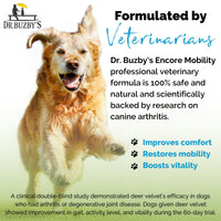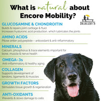 The result? A very special supplement that soothes stiff joints, improves comfort, and renews vigor and vitality throughout a senior dog’s “encore years.” That’s why we call it Encore Mobility.